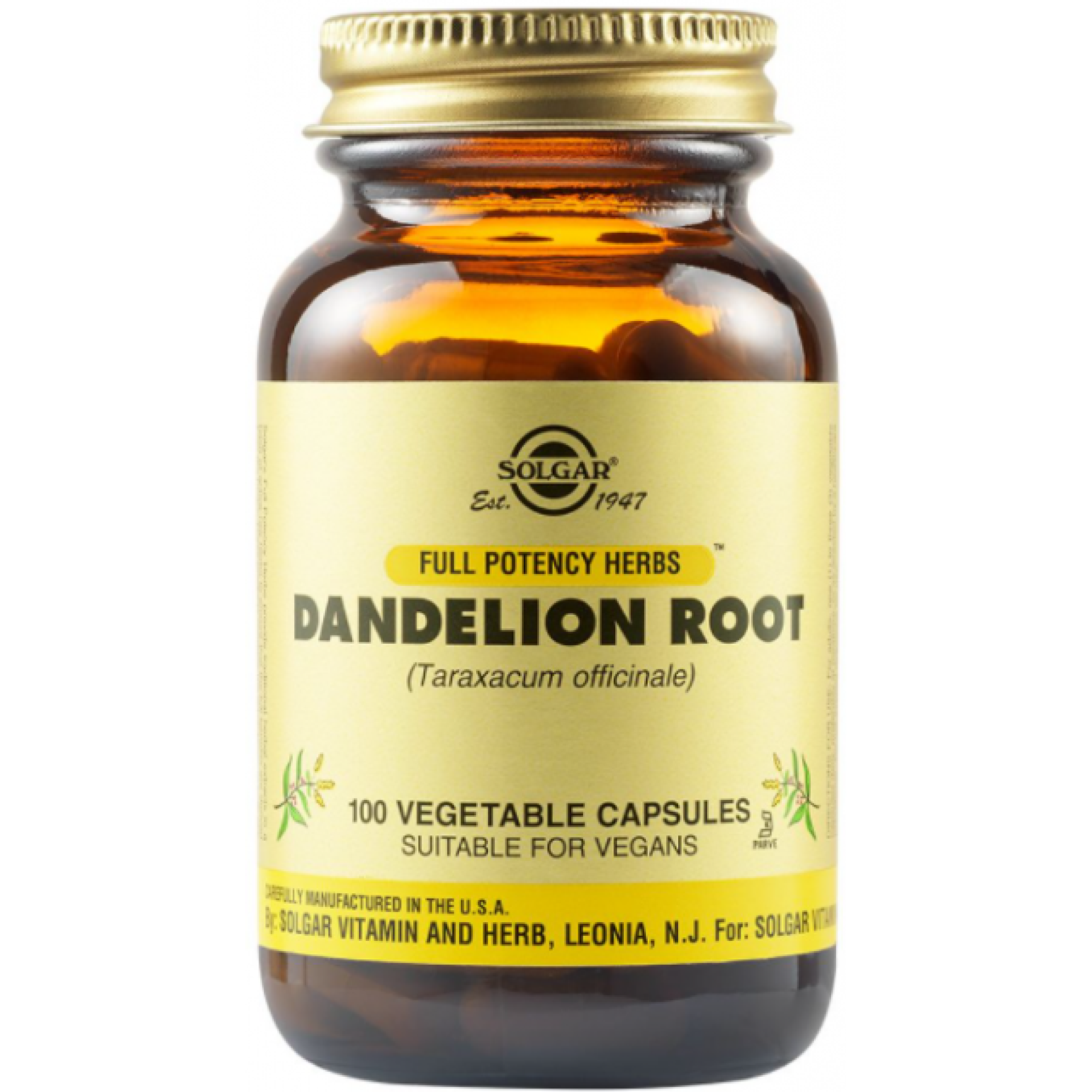 Το συμπλήρωμα διατροφής Dandelion Root (Taraxacum officinale) της Solgar τονώνει και αποτοξινώνει το ήπαρ, είναι διουρητικό, έχει αντιβακτηριακές ιδιότητες και είναι χρήσιμο σε διάφορες νοσηρές καταστάσεις του ήπατος, της χοληδόχου κύστεως και στον έλεγχο του βάρους.  Παρέχει πολλά διατροφικά στοιχεία και γι’ αυτό είναι χρήσιμο στη δόμηση υγειούς αίματος. Επίσης βοηθάει στην πρόληψη λιθών της χοληδόχου κύστεως. Σε φυτοκάψουλες. Λαμβάνετε 1-3 φυτοκάψουλες ημερησίως, κατά προτίμηση με τα γεύματα.  Κατάλληλο για vegans