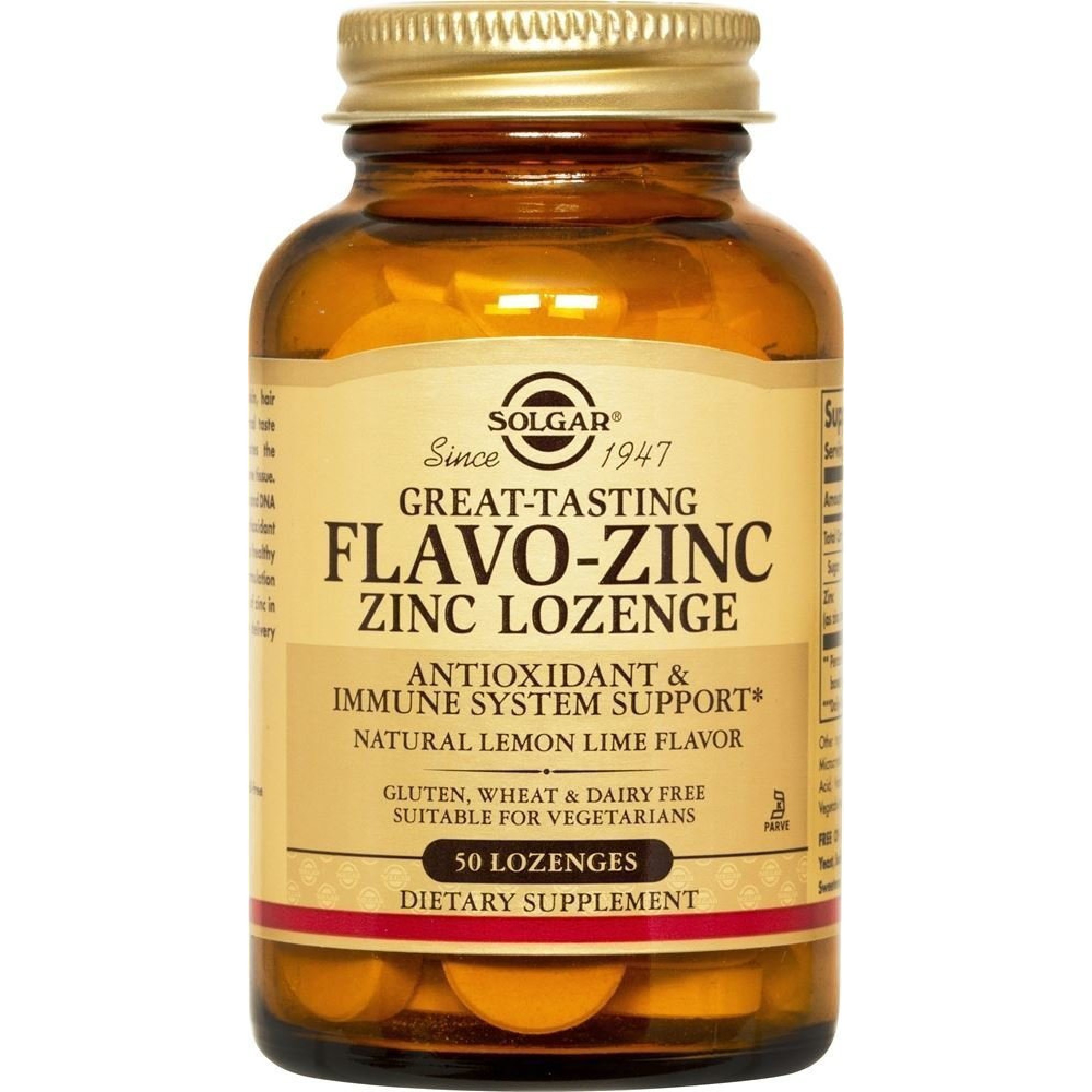 Συνδυασμός γλυκονικού και κιτρικού ψευδαργύρου σε μορφή παστίλιας. Απαλύνει τον ερεθισμένο λαιμό και ανακουφίζει από τα συμπτώματα του κρυολογήματος όταν διαλύεται στο στόμα. Χωρίς ραφιναρισμένα σάκχαρα, τεχνητά γλυκαντικά και αρώματα, χρώματα ή συντηρητικά. Με δροσερή γεύση λεμονιού και lime. Υψηλές δόσεις ψευδάργυρου μπορούν να επηρεάσουν δυσμενώς τα επίπεδα χαλκού (και αντίστροφα). Παρόλο που οι επιστημονικές απόψεις σχετικά με την ιδανική αναλογία χαλκού-ψευδάργυρου διίστανται, για παρατεταμένες περιόδους χρήσης η αναλογία 1:7.5 και 1:10 χαλκού προς ψευδάργυρο είναι πιθανόν απαραίτητη. Σε μασώμενα δισκία. Λαμβάνετε 1 μασώμενη ταμπλέτα ημερησίως.  Κατάλληλο για vegans.   ΠΗΓΗ: www.solgar.gr