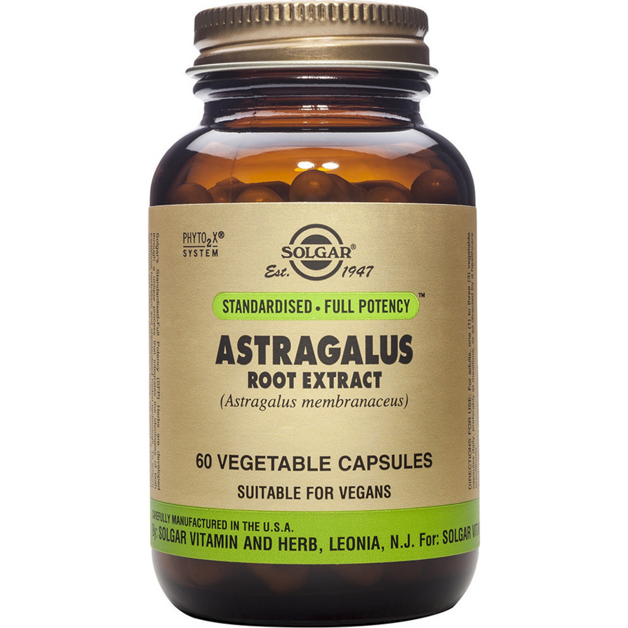 Το Astragalus Root Extract (Astragalus membranaceus) της Solgar διεγείρει το ανοσοποιητικό σύστημα και γι’ αυτό είναι πολύ χρήσιμο στην προστασία κατά των κοινών κρυολογημάτων. Ανεβάζει την αντοχή κατά τη διάρκεια άσκησης ή στρες, ενώ παράλληλα τονώνει το καρδιαγγειακό σύστημα. Επίσης θεωρείται ένα ήπιο διουρητικό. Σε φυτοκάψουλες. Λαμβάνετε 1-3 φυτοκάψουλες ημερησίως, κατά προτίμηση με τα γεύματα.  Κατάλληλο για vegans.   ΠΗΓΗ: www.solgar.gr